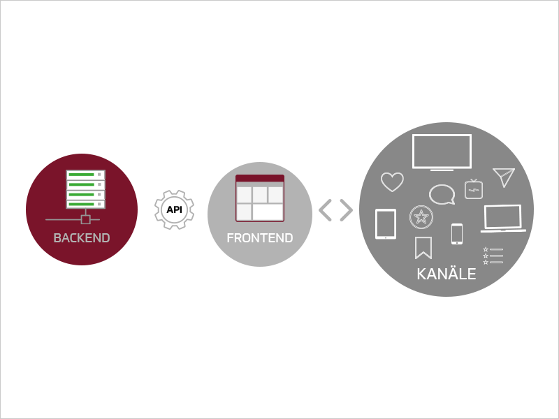 Eine Headless-Architektur trennt das Backend vollständig vom Frontend und ermöglicht es Teil- oder Funktionalitätskomplexe über eine API von externen Applikationen aus zu steuern.