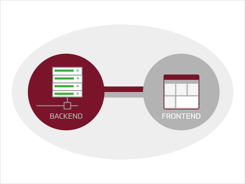 Bei der Architektur von coupled MA-Systemen wird das Anwendungsbackend bzw. das Backend-Verwaltungsportal und die Code-Basis mit der Front-End-Darstellung und -Funktionalität gekoppelt.